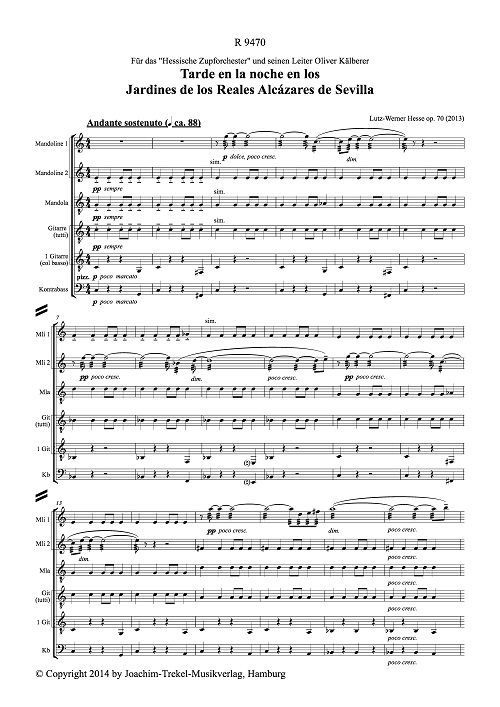 edition eurofestival präsentiert die vom "Bund Deutscher Zupfmusiker e.V." (BDZ) initiierten Auftragskompositionen für das "eurofestival zupfmusik 2014". Dieses Werk entstand 2013 nach einem Besuch in der andalusischen Stadt Sevilla. Der Besuch fand zeitgleich mit der "Semana santa", der Karwoche statt. In dieser Woche ist die Stadt voll von Menschen, vor allem Einheimischen, die die berühmten Prozessionen der "Kapuzenmänner und -frauen" (Bruderschaften, die sich ursprünglich aus beruflich konstituierten Gruppen gebildet haben) sehen wollen, die tagtäglich durch die Stadt ziehen. Es handelt sich dabei um Bußprozessionen, die eine jahrhundertealte Tradition haben. In dieser Woche ist in der Stadt eine ganz besondere Atmosphäre anzutreffen, die die Komposition einzufangen versucht, musikalische Eindrücke, so wie sie sich dem aufmerksamen Zuhörer z.B. bei einem Besuch in dem berühmten Park und Palast darstellen, der dem Werk seinen Titel gegeben hat: Von Ferne dringen unterschiedliche Musiken an das Ohr und mischen sich zu einem bunten Kaleidoskop. Dabei kommt die Komposition ohne Hispanismen irgendwelcher Art aus, beschreibt also eher Gefühle als Eindrücke.