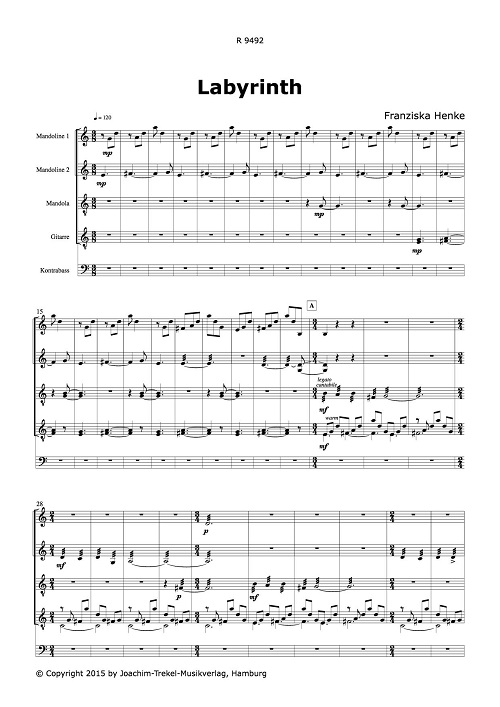 Mitten in einem Labyrinth, auf der Suche nach dem Weg nach draußen, kommt man an Orte, die täuschend ähnlich zu anderen aussehen.. und klingen. Das auf- und absteigende Grundmotiv tritt wieder und wieder in einem anderen Gewand hervor, führt den Hörer durch die Gänge eines großen Labyrinthes und leitet ihn zu neuen Abzweigungen und unbekannten Stellen. Das Stück durchlebt verschiedene Phasen einer Reise und baut durch seine aus Patterns bestehende Struktur in sich ein Labyrinth auf. á á