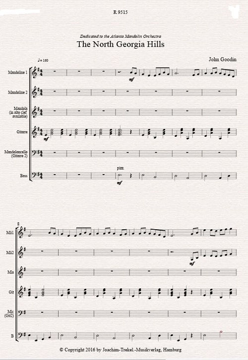 The North Georgia Hills wurde 2015 für das Atlanta Mandolin Orchestra komponiert. Der Titel entstammt einer Textzeile aus dem Lied "Ginseng Sullivan", das der Gitarrist, Mandolinist und Komponist Norman Blake Anfang der 1970er schrieb. Das Stück ist inspiriert von Norman und Nancy Blakes Kompositionen, die mit Unterstützung von Peter Ostroushko für Zupforchester arrangiert und 1983 auf der Platte "Original Underground Music from the Mysterious South" eingespielt wurden. "The North Georgia Hills" was composed in 2015 for the Atlanta Mandolin Orchestra. The title is taken from a line in the song "Ginseng Sullivan", written by guitarist, mandolinist and composer Norman Blake in the early 1970s. The music itself was inspired by the compositions of both Norman and Nancy Blake arranged, with the assistance of Peter Ostroushko, for mandolin ensemble and released in 1983 on the album "Original Underground Music" from the Mysterious South.