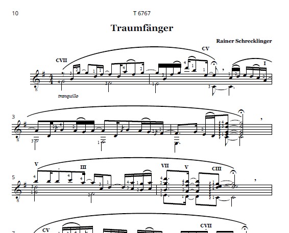 3 rhythmisch eng verwandte, charakterlich dennoch sehr verschiedene Kompositionen, die Skordaturen, Kapodaster, Flageoletts und perkussive Effekte nutzen und damit eine einnehmende Atmosphäre erzeugen.